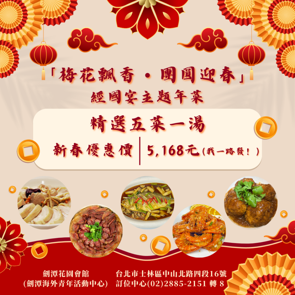 今年除夕,劍潭為您端上一席具有傳承意義的家宴。延續劍潭熱銷好評、深受各界喜愛的「經國宴」系列桌菜,今年我們特別將這份時代滋味轉化為精緻的外帶饗宴,復刻出五道主菜與一道湯品的經典配置。 精選五菜一湯, […]